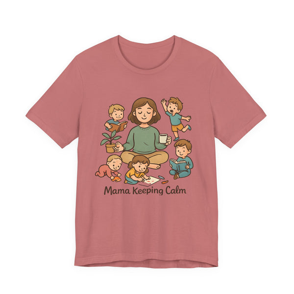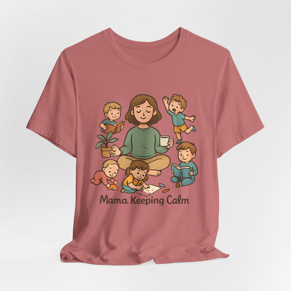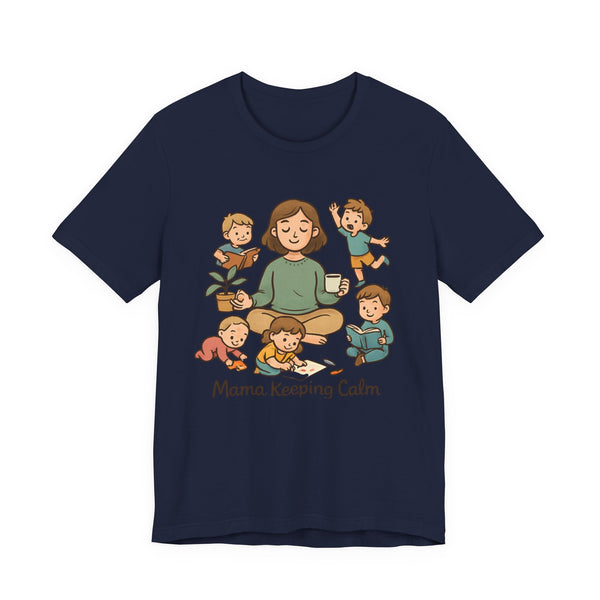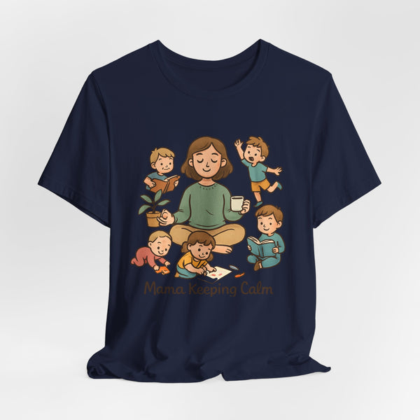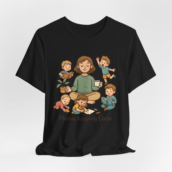 Soft, breathable tee designed for the chaos-and-calm of parenting. A peaceful, illustrated mama sits cross-legged surrounded by playful little ones, a warm cup in hand and a gentle smile on her face. The lightweight cotton feels cool while running errands or folding laundry; the retail fit layers easily under a cardigan or pairs with jeans for a laid-back day. This shirt quietly celebrates the everyday juggling act—wear it when you need a reminder to breathe, laugh, and keep going.